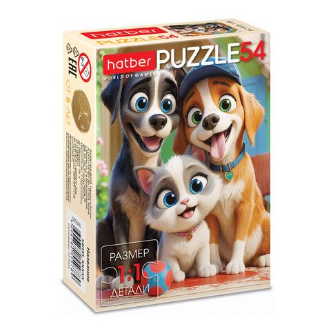 Пазл картонный 54 элемента "ОЧАРОВАТЕЛЬНЫЕ МОРДАШКИ", КОМПЛЕКТ 40 штук, 175х130 мм, HATBER