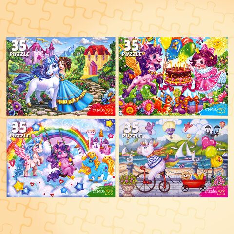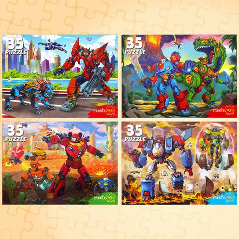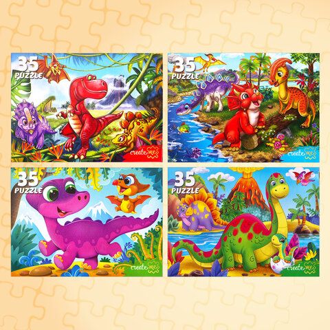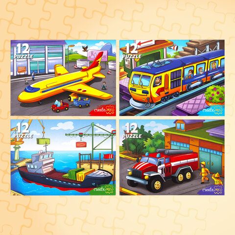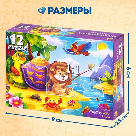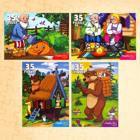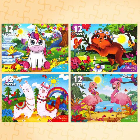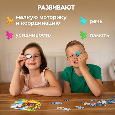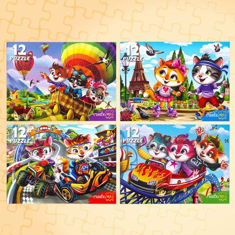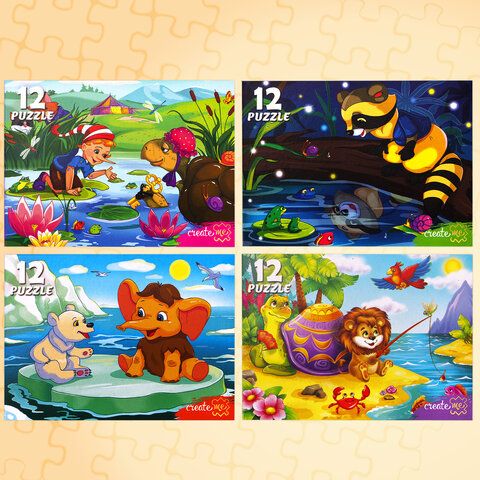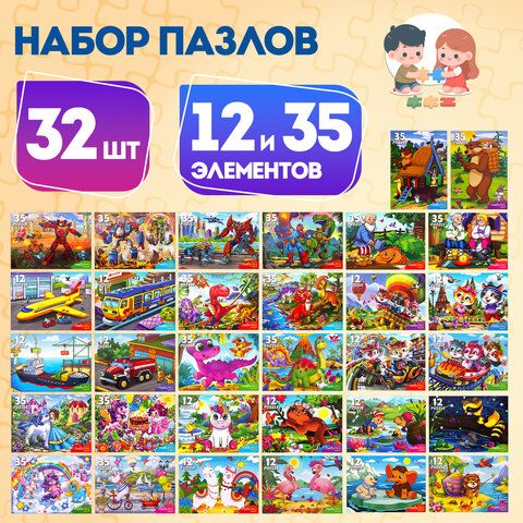 Пазлы картонные 12 элементов + 35 элементов, КОМПЛЕКТ 32 шт., поле 17,5х13 см, РК