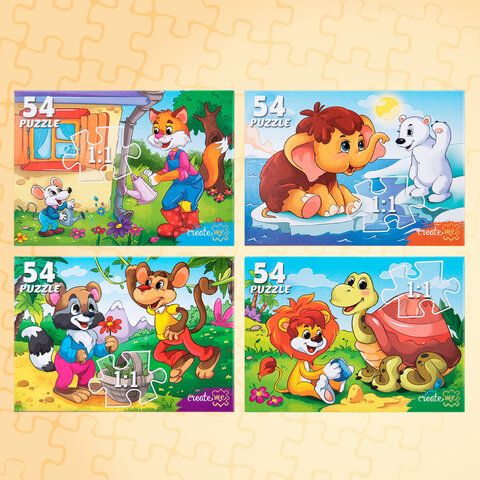 Пазлы картонные 54 элемента, КОМПЛЕКТ 32 шт., поле 17,5 х 13 см, РК
