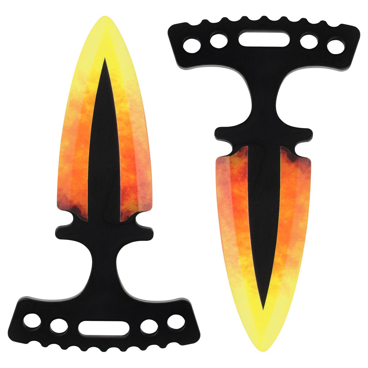 Деревянный нож порадует поклонников компьютерных игр своим высоким качеством и яркими скинами. Ножи Тычковый положит начало коллекции игрового оружия или будет дополнением к уже существующей. В наборе 2 ножа. Изделие абсолютно безопасно, острие ножа затуплено, края лезвия сглажены и закруглены. Можно спокойно играть и тренироваться, не беспокоясь о нанесении телесных повреждений. Игрушечное оружие ТРИ СОВЫ изготавливается в России из натуральных материалов (березовая фанера) с преобладанием ручного способа производства. Деревянное оружие окрашено с помощью стойкого и яркого пигмента, выглядит настоящим произведением искусства, а его поверхность имеет неповторимый рисунок. Важно помнить, что сделан из дерева и требует аккуратного обращения. Не стоит подвергать изделие чрезмерным механическим нагрузкам. Серия "Легендарный" отличает игрушку реалистичностью и четкой детализацией, а также специальный слой матового лака защищает от нежелательных механических повреждений.