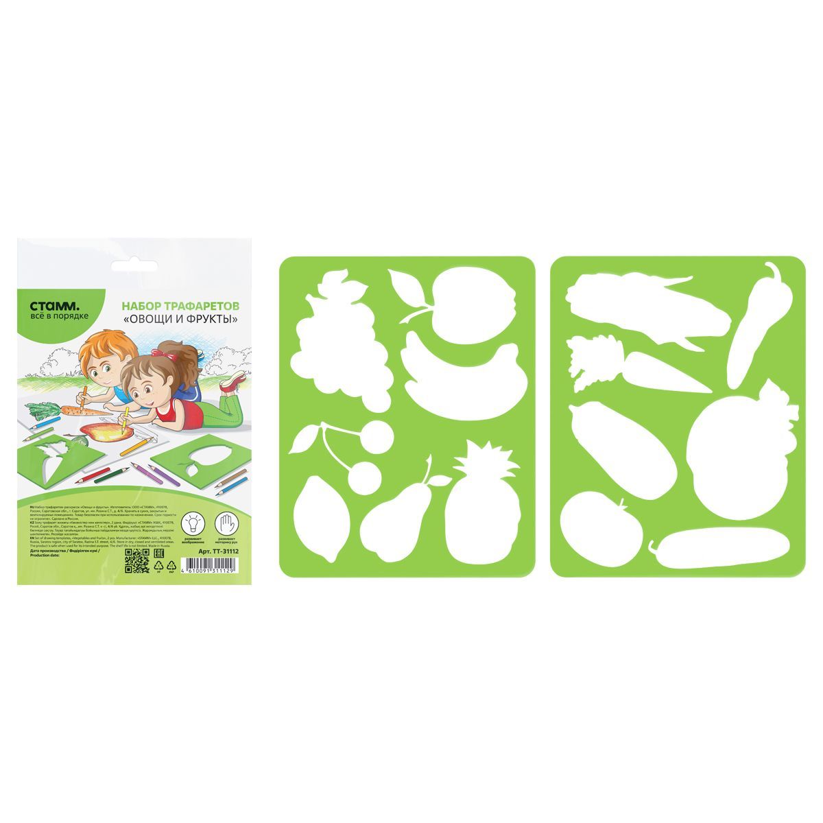 Набор трафаретов-раскрасок СТАММ "Овощи и фрукты", 2шт.
