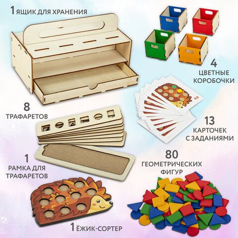 Сортер деревянный развивающий 4в1 "Волшебный сундучок", карточки, фигуры, BRAUBERG KIDS, 665265