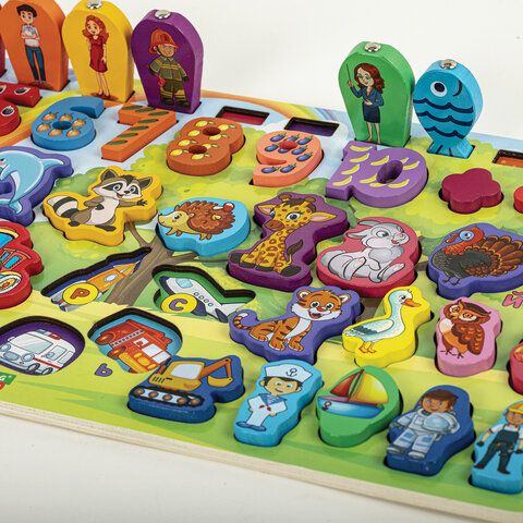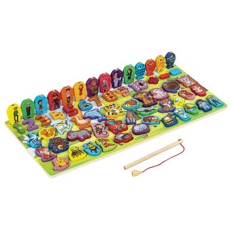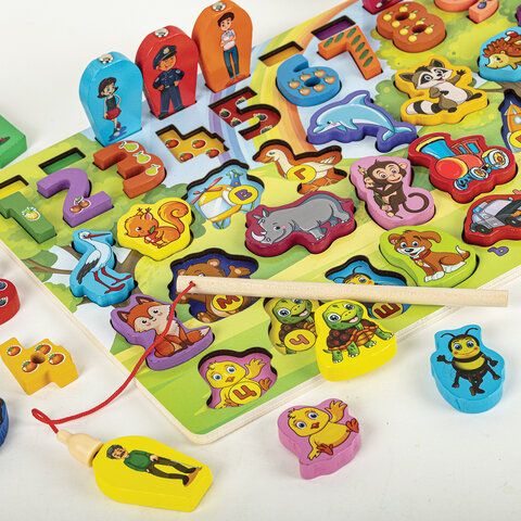 Сортер-доска 45 х 22 см, РАЗВИВАЮЩИЙ-1/Монтессори с магнитной рыбалкой, дерево, BRAUBERG KIDS, 665242