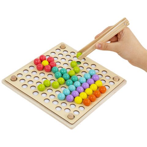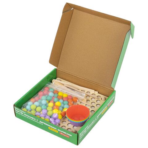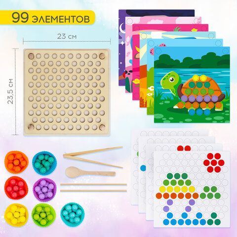 Сортер-мозаика с деревянный шариками, развивающий, 3 в 1 по методу Монтессори, BRAUBERG KIDS, 665247