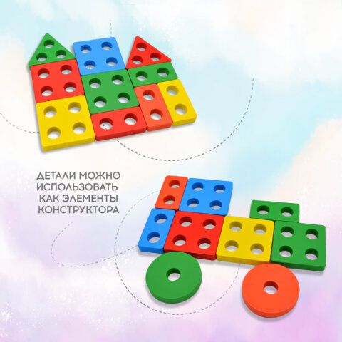 Сортер-пирамидка 5 фигур "Геометрик", метод Монтессори, развивающий, дерево, BRAUBERG KIDS, 665259