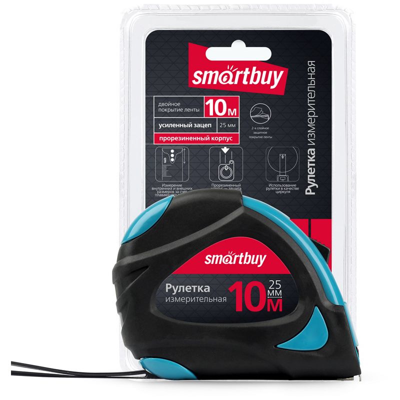 Рулетка измерительная Smartbuy, 10м*25мм, прорезиненный корпус, 2 фиксатора, усиленный зацеп