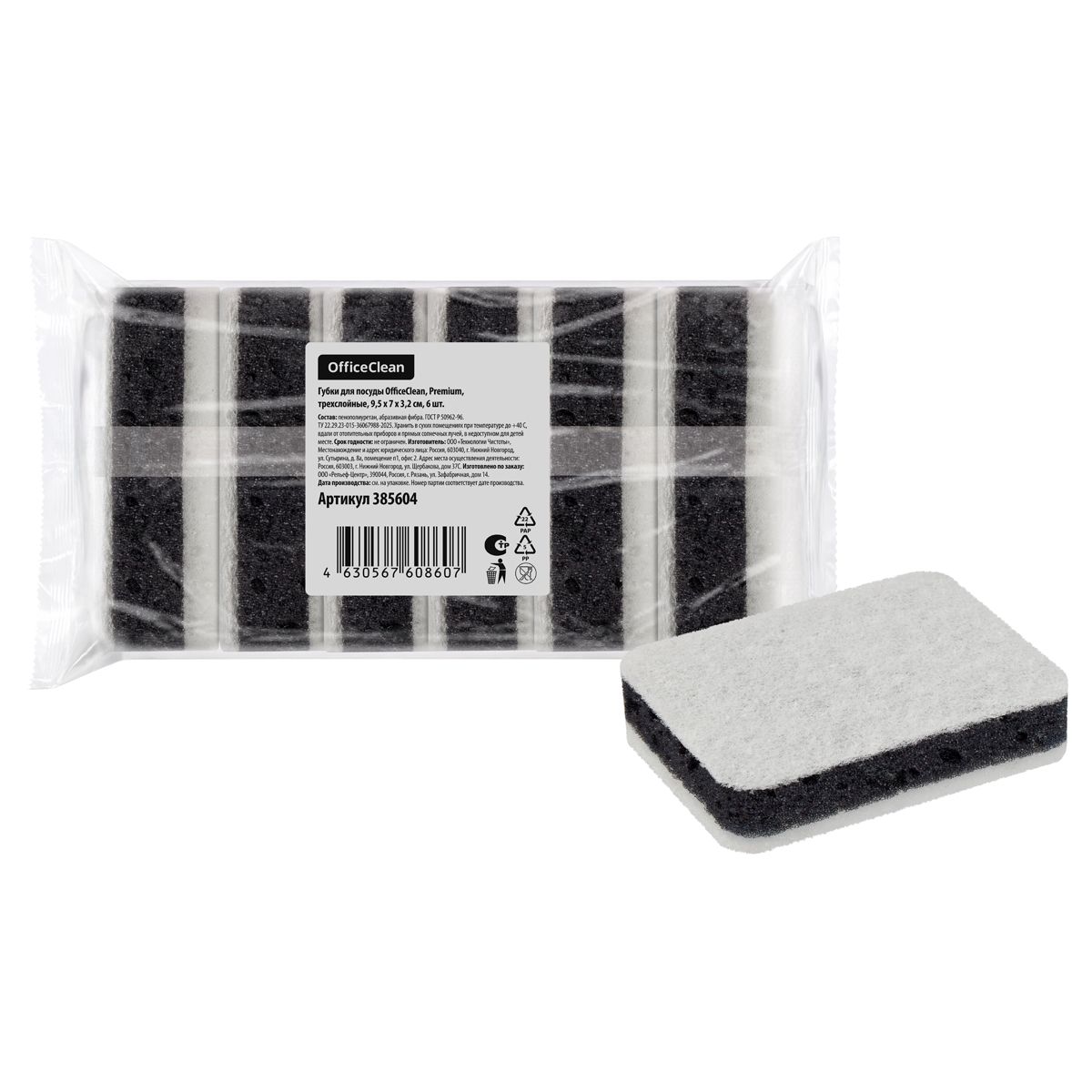 Губки для посуды OfficeClean "Премиум", трехслойные, 9,5*7*3,2см, 6шт