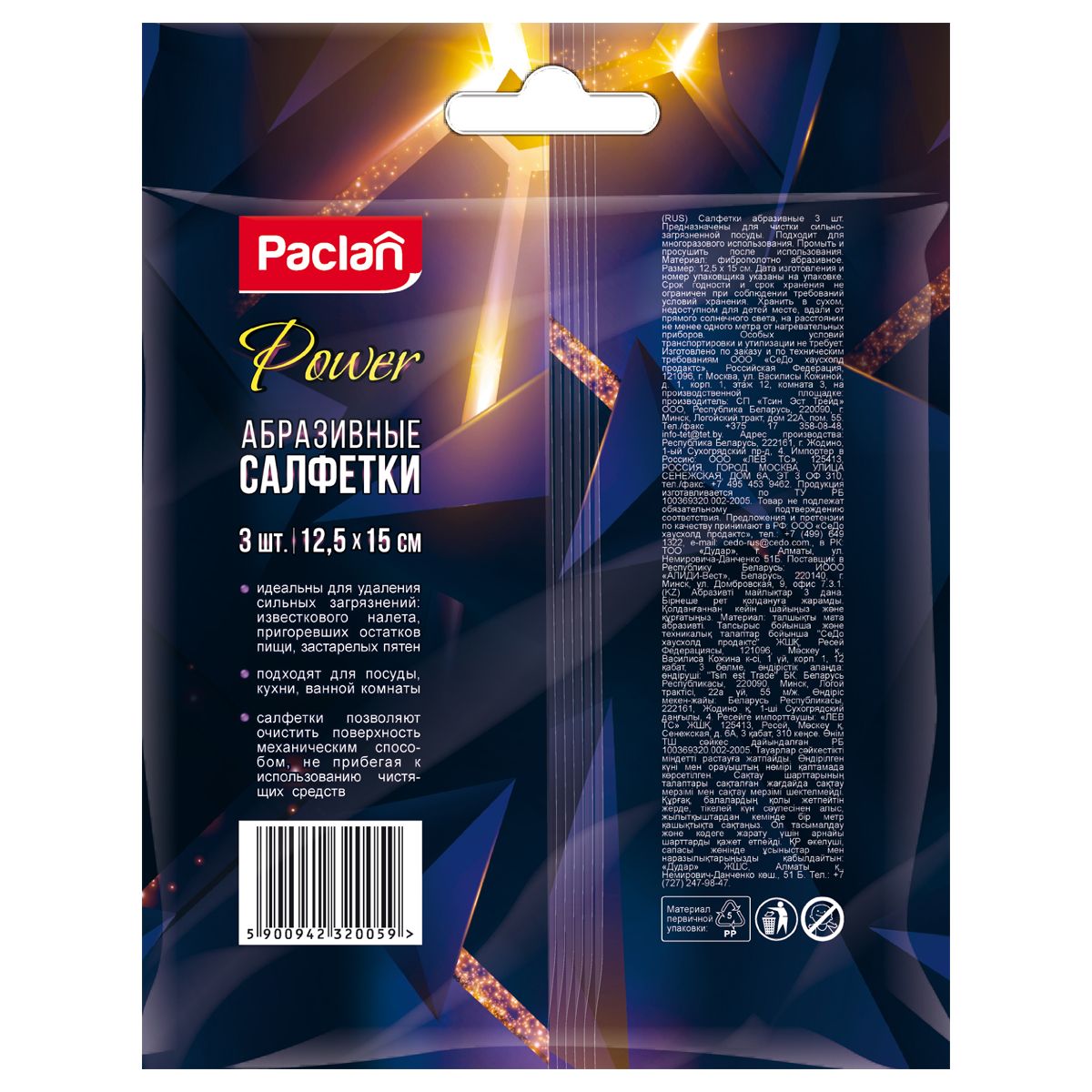 Губки для посуды Paclan "Practi", игольчатый абразив, 3шт