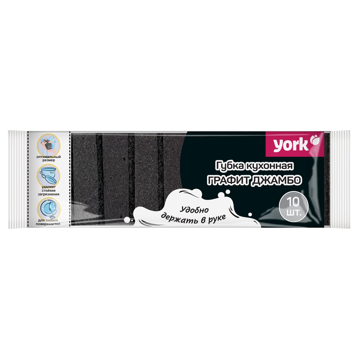 Губки для посуды York "Графит Джамбо", поролон с абразивным слоем, 8,5*6*2,5 см, 10шт.