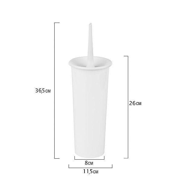 Высота ерша: 34 см. Диаметр щетки: 7 см. Материал: пластик. Цвет: бело-черный. Вес: 76 г.