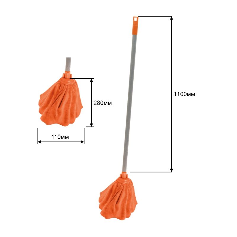 Тип швабры: швабра "Юбка". Тип крепления насадки: резьба 1,6 см. Тип крепления рукоятки: резьба 1,6 см. Диаметр рукоятки: 2,2 см. Длина рукоятки: 110 см. Размер насадки: 28 х 11 см. Материал насадки: микрофибра. Материал рукоятки: металл. Вес: 240 г. Сменные насадки: 303088.