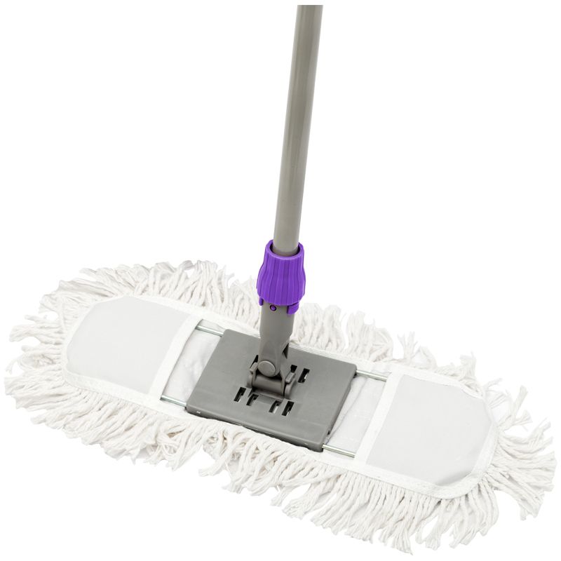 Насадка (МОП) швабры изготовлена из хлопка с длинным ворсом и добавлением полиэстера. Хлопок дает высокую гигроскопичность насадке, при сухой уборке насадка хорошо убирает пыль, не позволяя ей разлетаться, а при влажной уборке отлично впитывает воду, не оставляя разводов на полу. Благодаря тому, что насадка изготовлена не из 100% хлопка, а с добавлением полиэстера - это дает ей высокую стойкость к истиранию, при этом она хорошо скользит по полу, собирает грязь, мелкий мусор, песок, шерсть домашних животных.