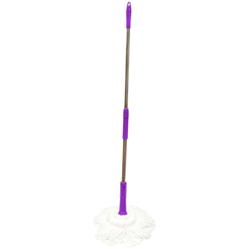 Тип швабры: самоотжимная (скручивающаяся). Тип крепления насадки: резьба 1,6 см. Тип крепления рукоятки: встроенный. Диаметр рукоятки: 2,1 см. Максимальная длина рукоятки: 120 см. Минимальная длина рукоятки: 46 см. Размер насадки: 38 х 14 см. Материал насадки: микрофибра. Материал рукоятки: металл. Вес: 476 г. Сменная насадка: 303083.