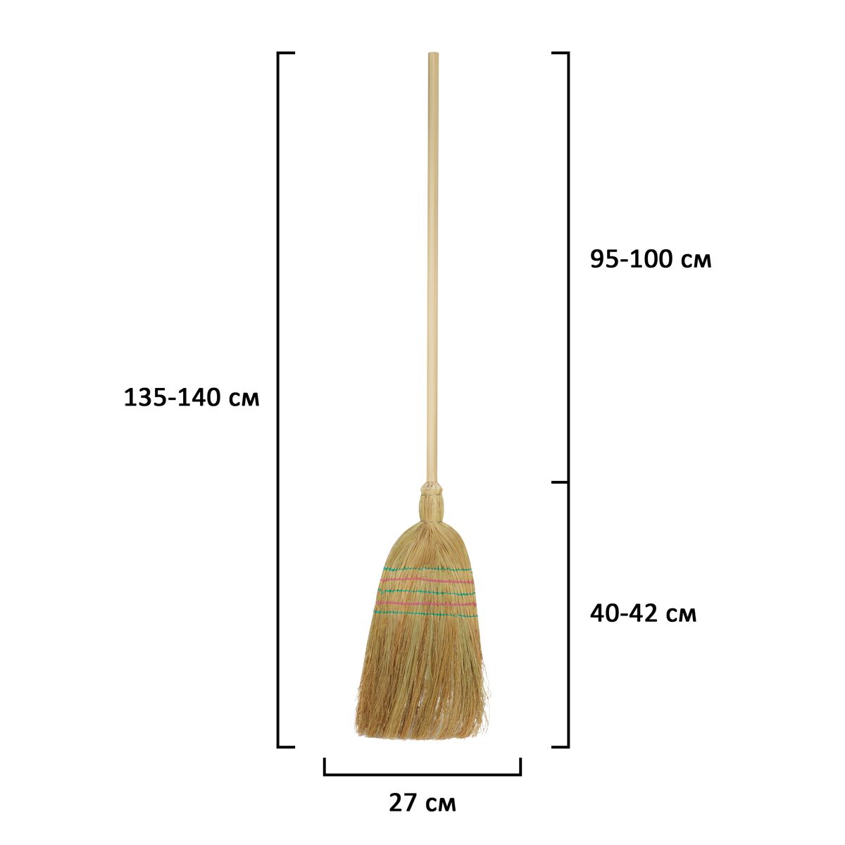 Веник-метла натуральная сорго Vega, пятипрошивной, с дерев. черенком, 140*27см