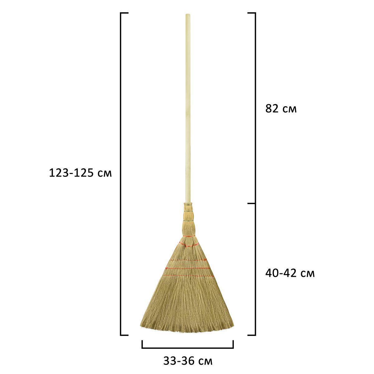 Веник-метла натуральная сорго Vega, трёхпрошивной, 3-х лучевой, с дерев. черенком, 124*35см