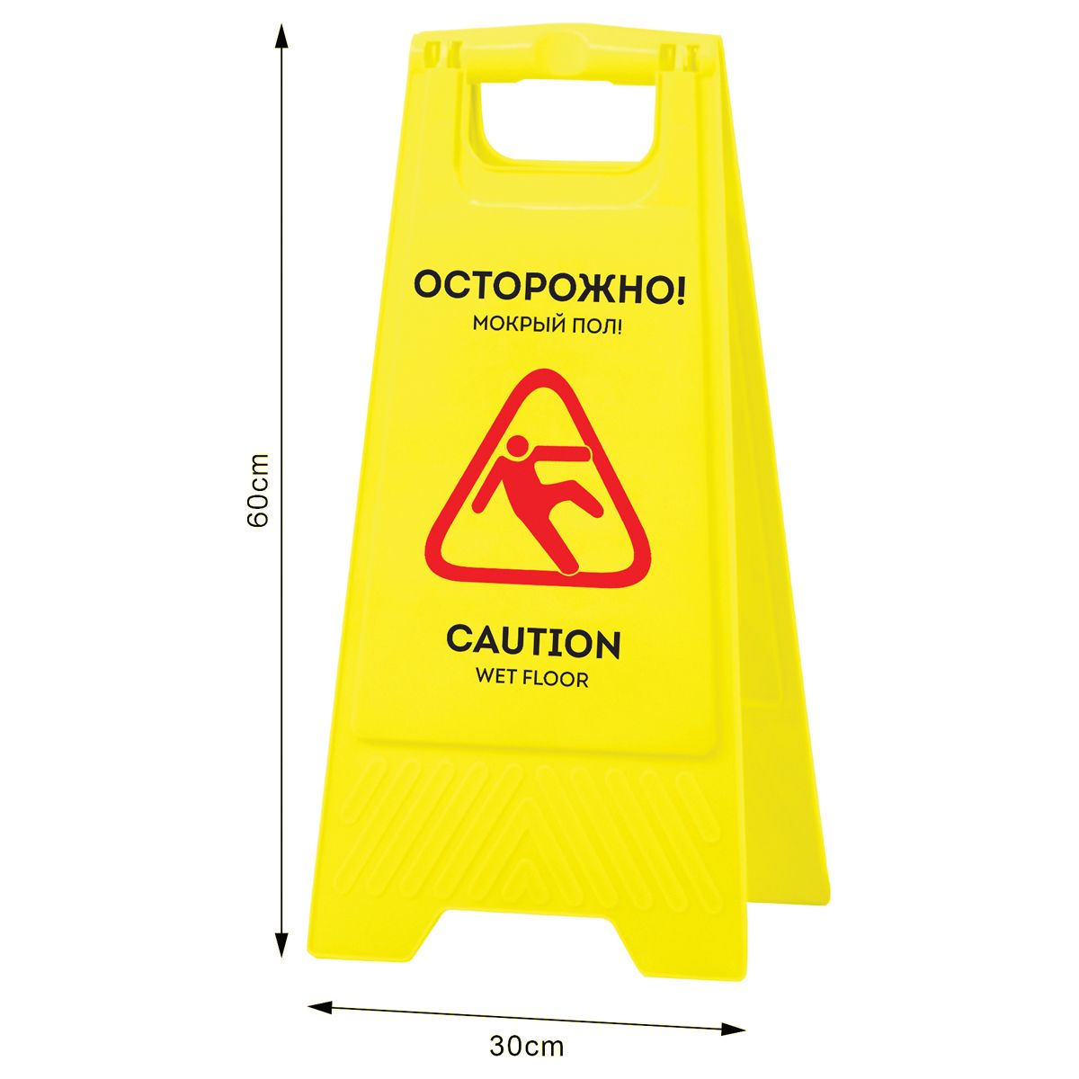 Знак "Осторожно! Мокрый пол!" OfficeClean Professional, пластик, 62*30см, на англ. и русском языках