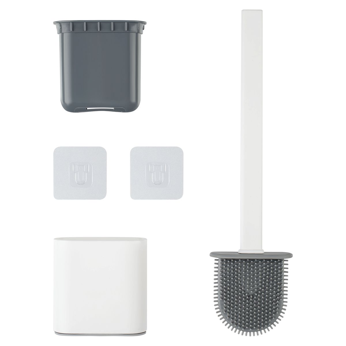 Ёршик выполнен из высококачественных материалов: пластика и силикона. Он идеально впишется в любой интерьер благодаря своему минималистичному дизайну. Ёрш с подставкой имеет два вида крепления: напольное и настенное. Для второго способа крепления разместите монтажную наклейку с липкой основой в месте крепления и приклейте чашу к наклейке. Такой вид крепления экономит пространство, не занимая много места и оставаясь незаметным.
