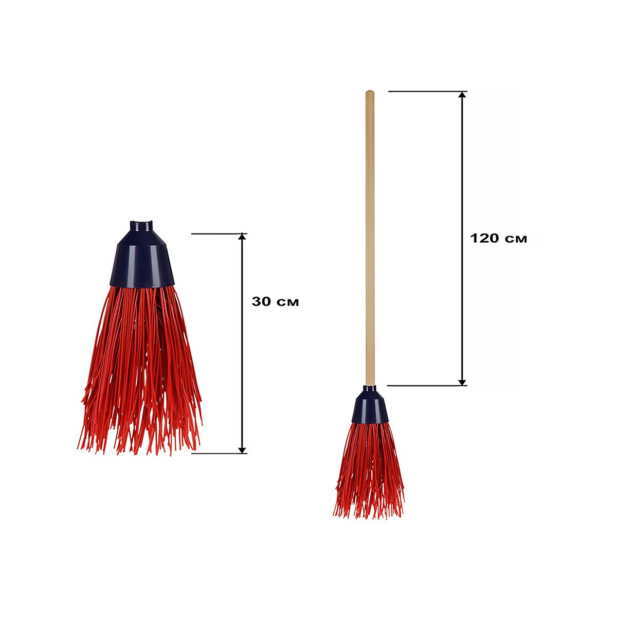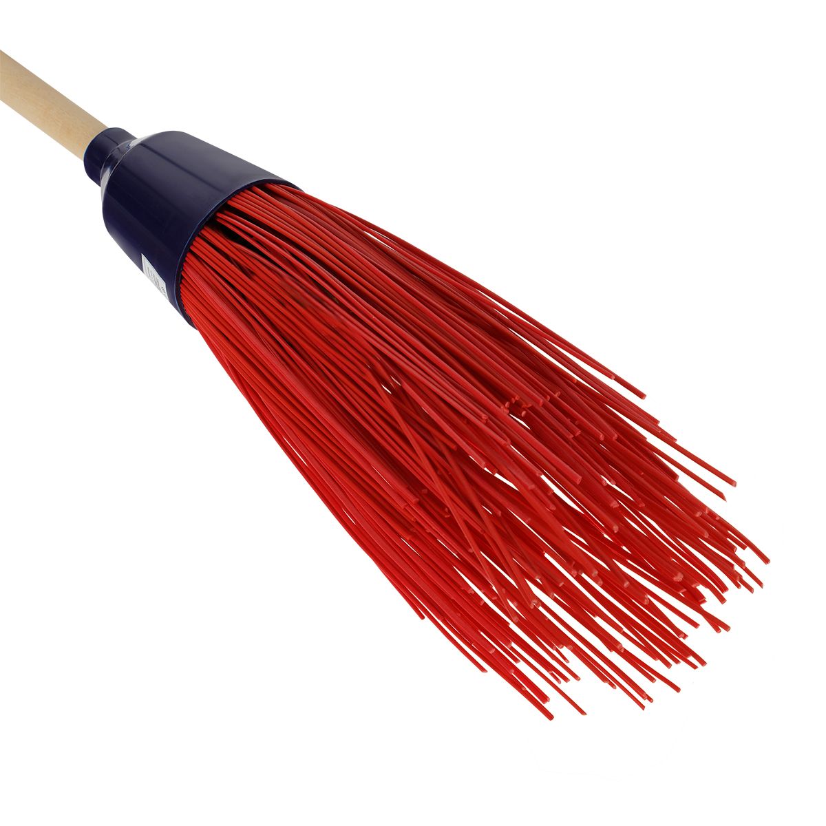 Метла Vega, синтетическая, для улицы, круглая, 5 колец, щетина 30см, с дерев. черенком 120см