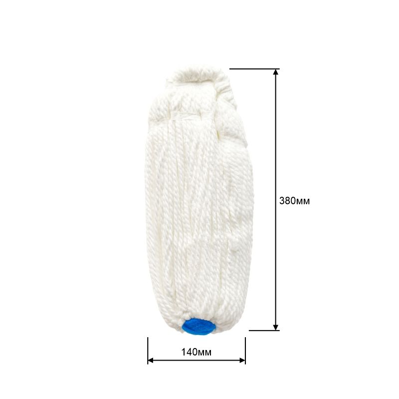 Тип насадки: самоотжимная (скручивающаяся). Материал: микрофибра. Крепление насадки: болт-шпилька. Максимальный объем впитывания: 2000 мл. Размер насадки: 38 х 14 см. Длина ворса: 38 см. Цвет: белый. Вес: 140 г. Подходит к швабре (Код: 303074).