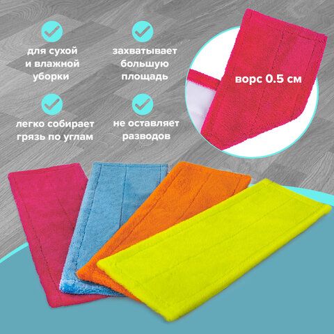 Насадка МОП плоская КОМПЛЕКТ 4 шт, УНИВЕРСАЛЬНАЯ для швабр 38-42 см (ТИП К), микрофибра, LAIMA, 607459