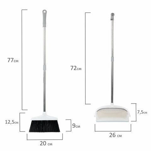 - Комплекты совок+щётка — универсальное решение для оперативного сбора мусора и пыли.