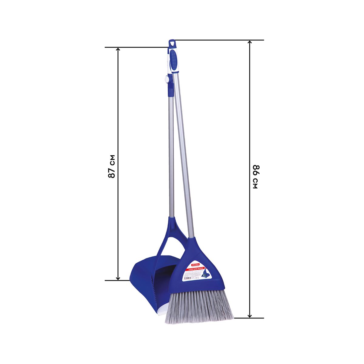 Совок для мусора OfficeClean Professional со щеткой-сметкой, складной, метал. ручка 66см, резин. кромка