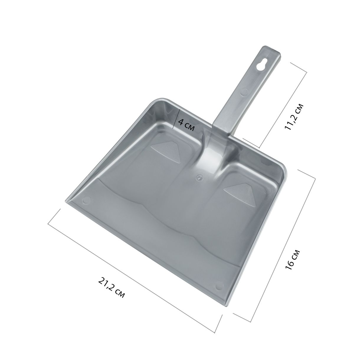Совок для мусора Vega, низкая ручка, без резиновой кромки, ширина 21,5см, пластик, серый