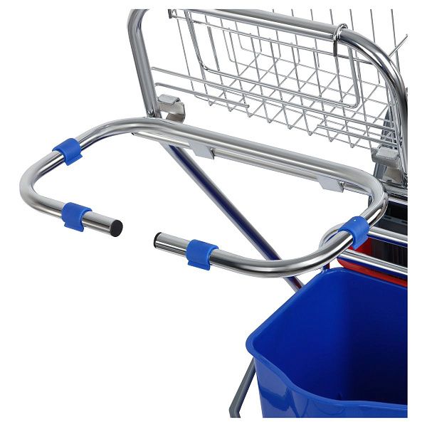 • Многофункциональные комплексы: оснащены держателями для инвентаря, корзинами и мешками для мусора, превращая тележку в мобильную станцию для клининга.