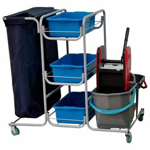 - Площадь помещения: Для небольших офисов или комнат достаточно одноведерной модели. Для уборки больших залов, коридоров и торговых центров выбирайте двухведерные или многофункциональные тележки.