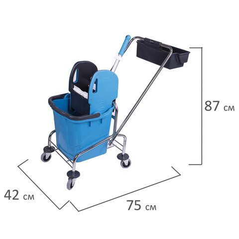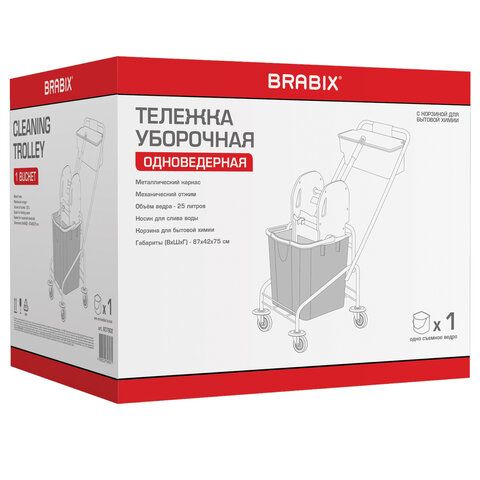 Тележка уборочная, 1 съемное ведро 25 л, механический отжим, корзина, BRABIX, Турция, 607902