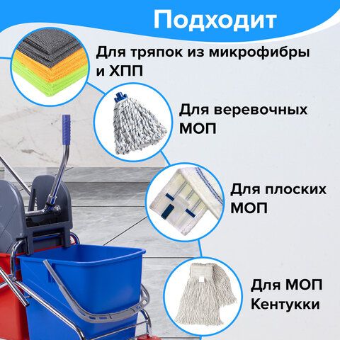 Тележка уборочная BRABIX, 2 съемных ведра 25 л, механический отжим, металлический каркас, 601499