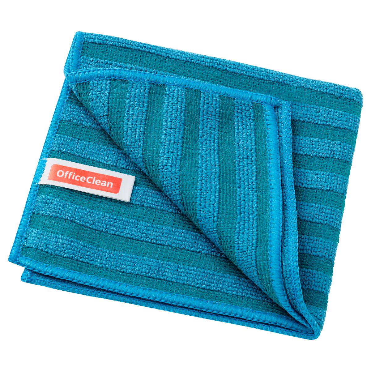 Салфетка для уборки OfficeClean, для сильных загрязнений, двусторонняя, с абразивом, 30*30см, европодвес, синяя