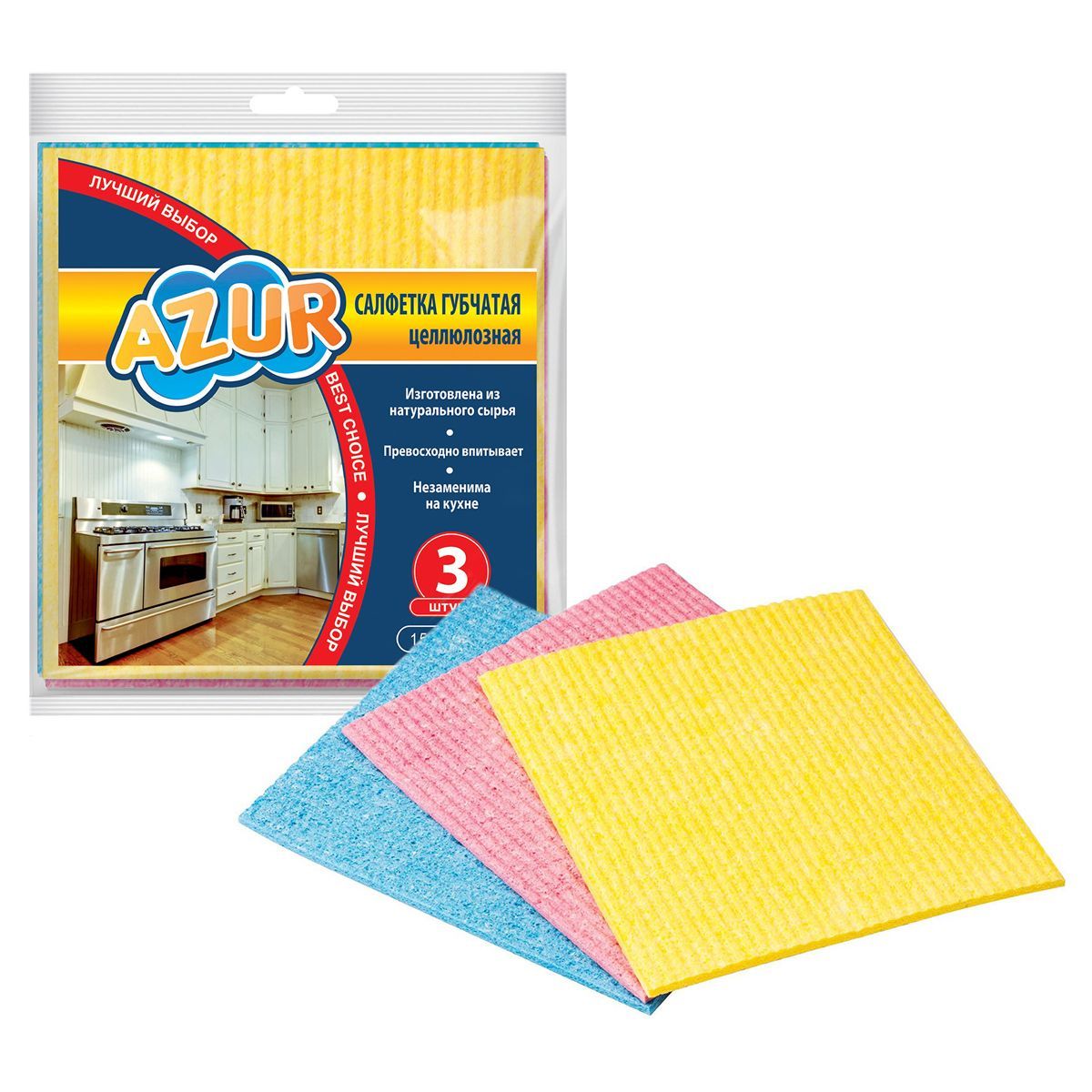 Салфетки для уборки AZUR, набор 3шт., губчатые, 15*15см