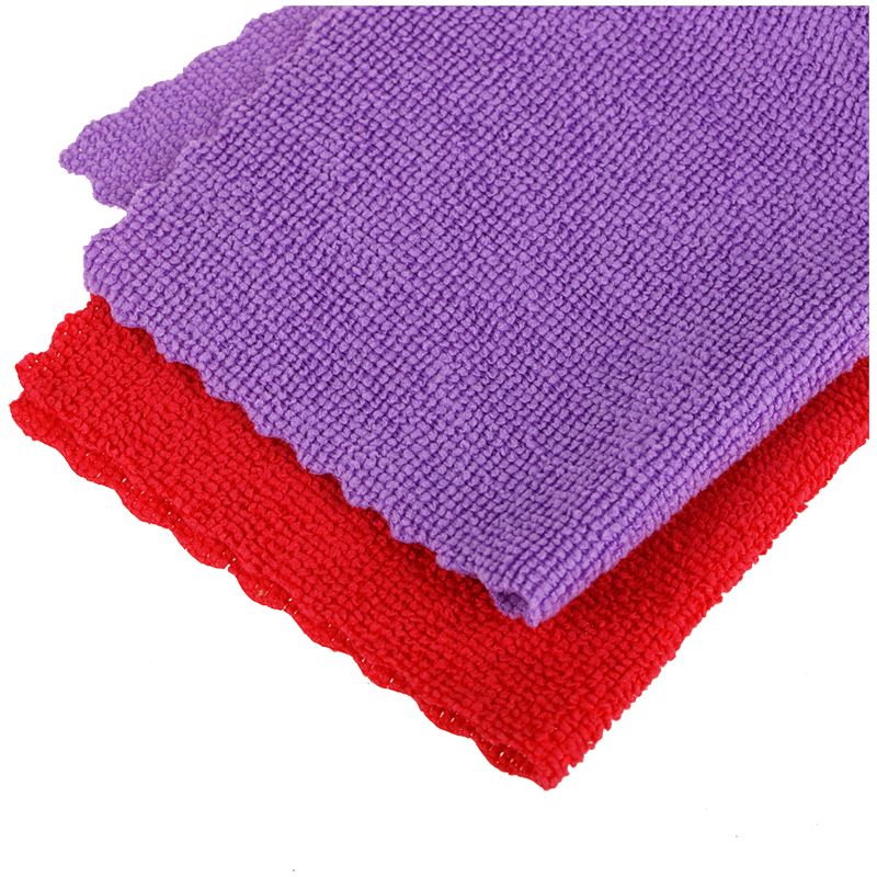 Салфетки для уборки OfficeClean "Универсальные", набор 2шт. (фиолетовая+красная), микрофибра, 25*25см, европодвес