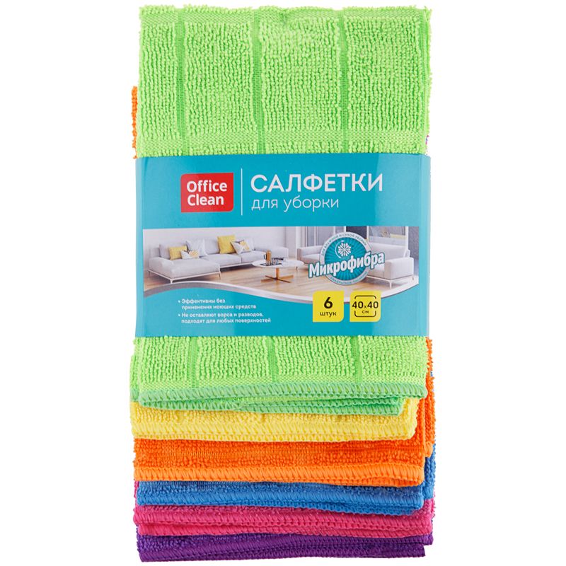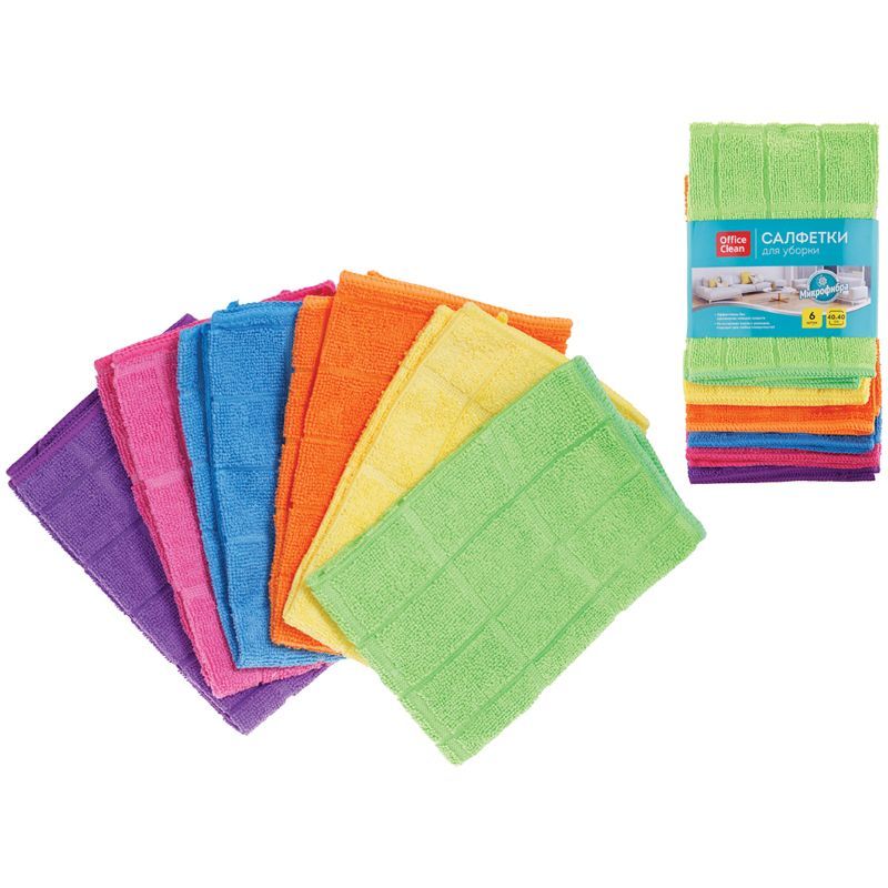 Салфетки для уборки OfficeClean "Универсальные", набор 6шт., микрофибра, 40*40см, квадратное тиснение