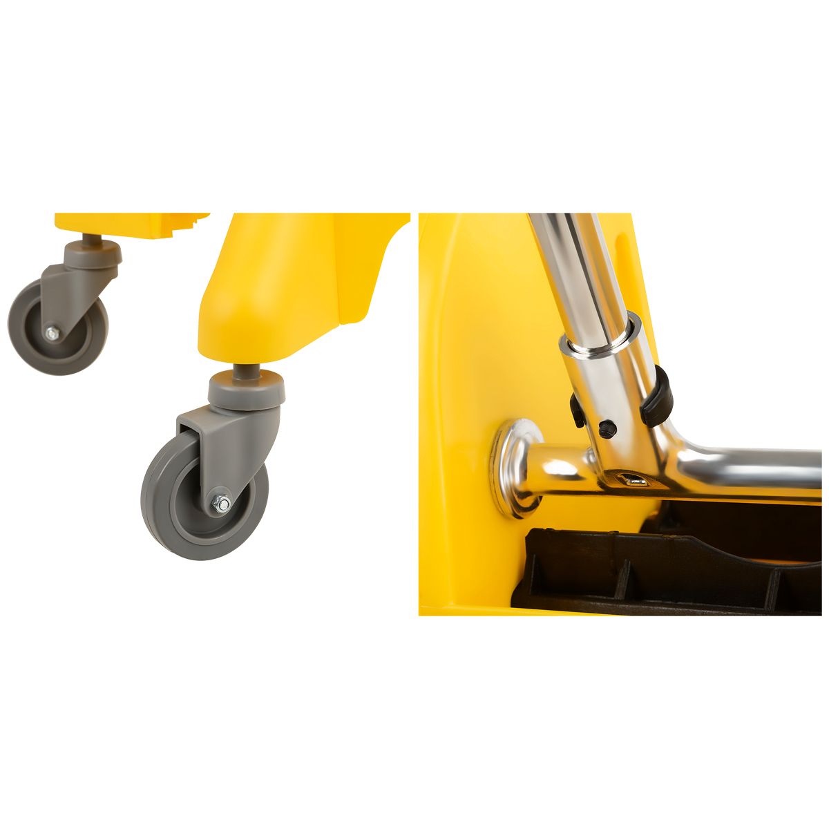 Материал ручки механического отжима – ПВХ и нержавеющая сталь.