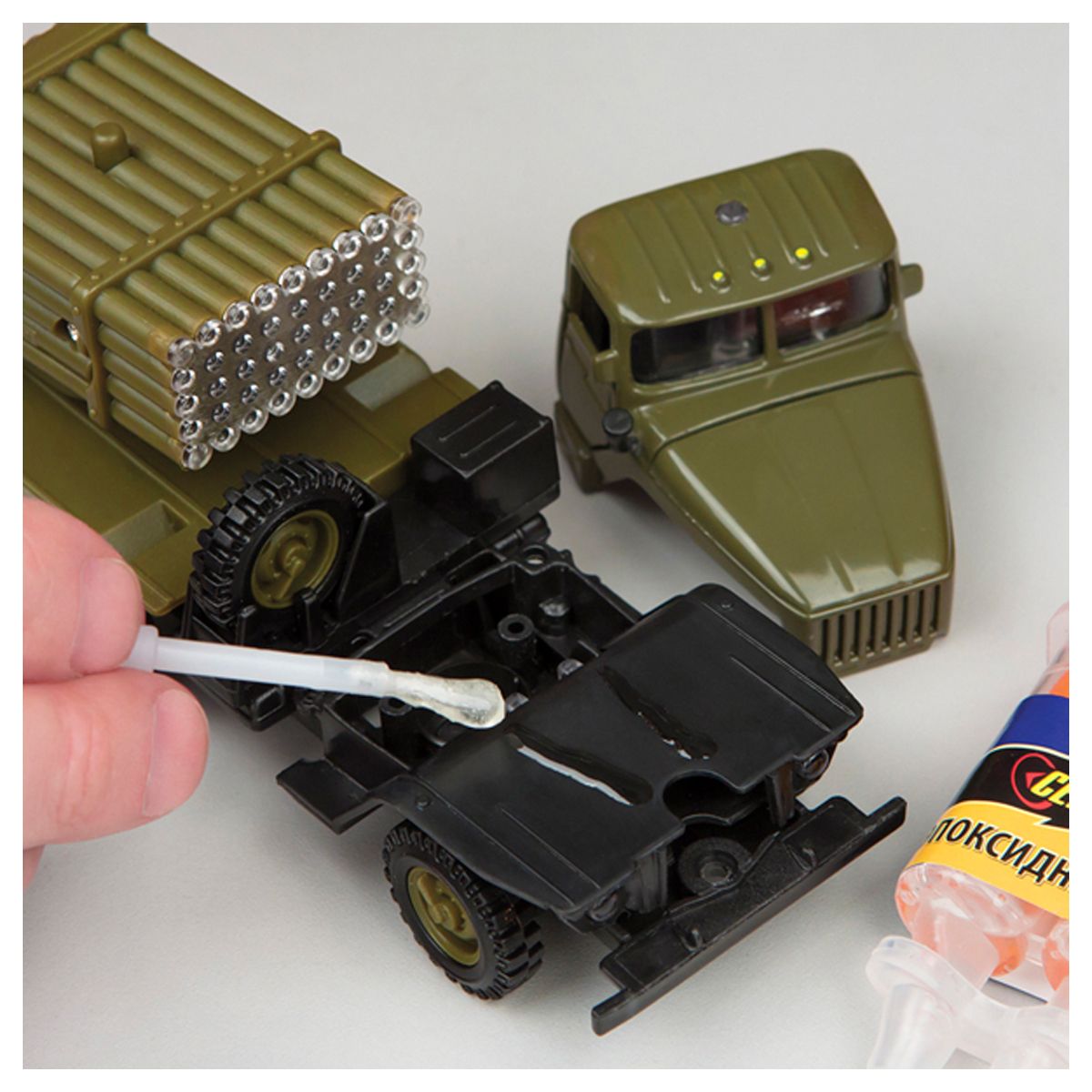 Благодаря специальной конструкции двойного шприца, стало возможным быстро, просто и равномерно дозировать компоненты клея. Клей в застывшем состоянии устойчив к агрессивным средам (вода, масла, растворители), выдерживает температуры до +150 °C.