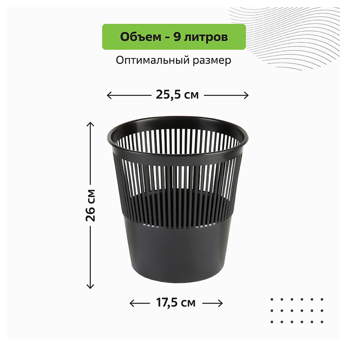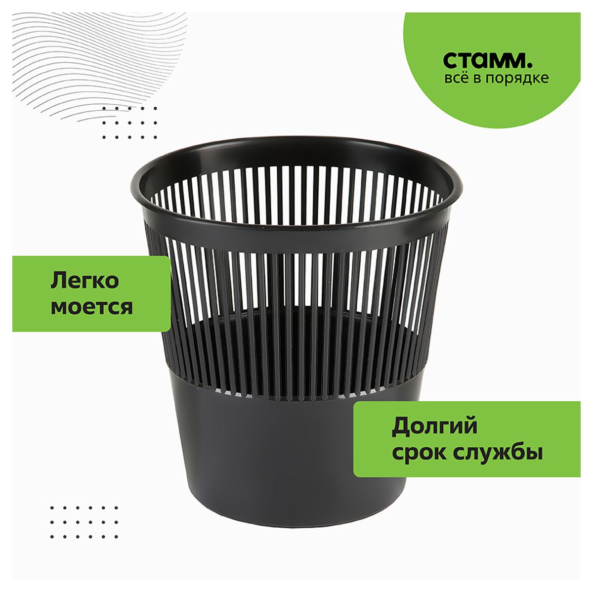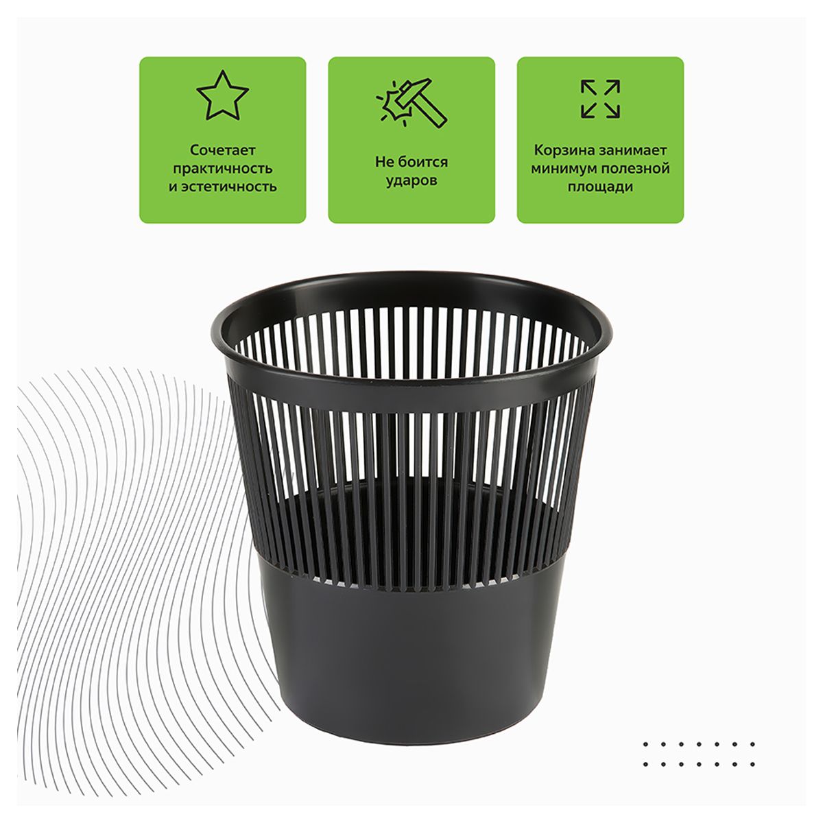 Корзина для бумаг СТАММ, 09л, сетчатая, черная