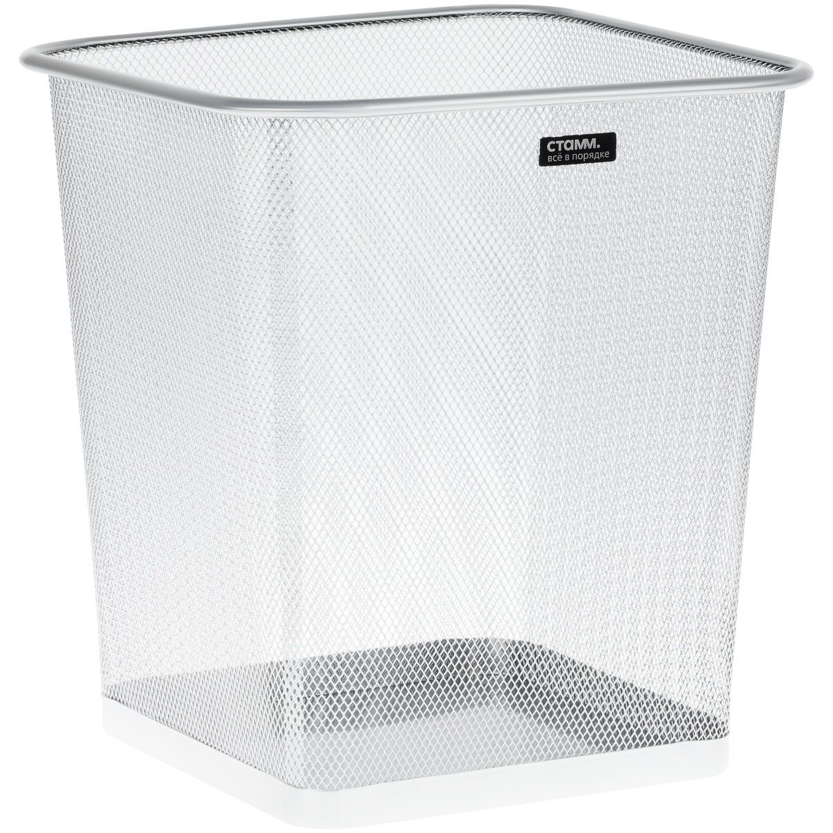 Корзина для бумаг СТАММ, 20л, сетчатая, металлическая, квадратное основание, серебристая