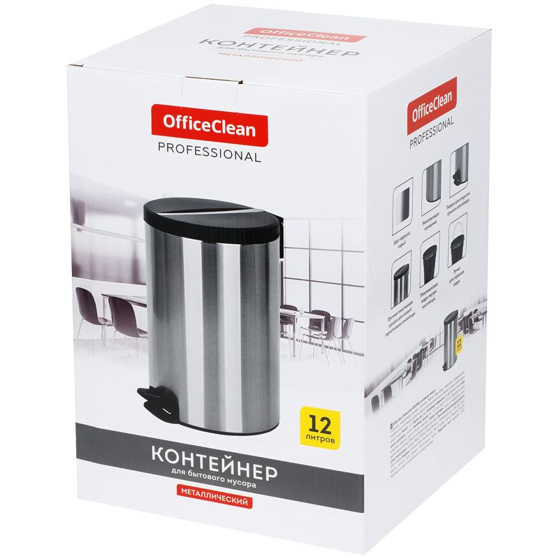 Ведро-контейнер для мусора (урна) OfficeClean Professional Original, 12л, корпус нержавеющая сталь, крышка из пластика, хром