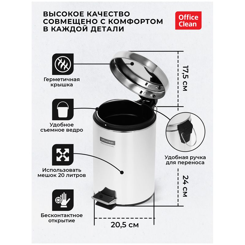 Ведро-контейнер для мусора (урна) OfficeClean Professional Simple, 5л, нержавеющая сталь, хром
