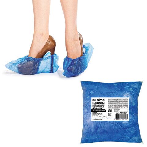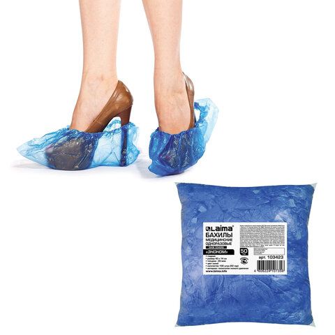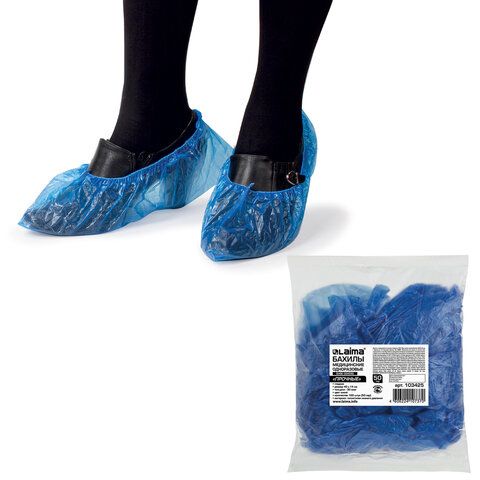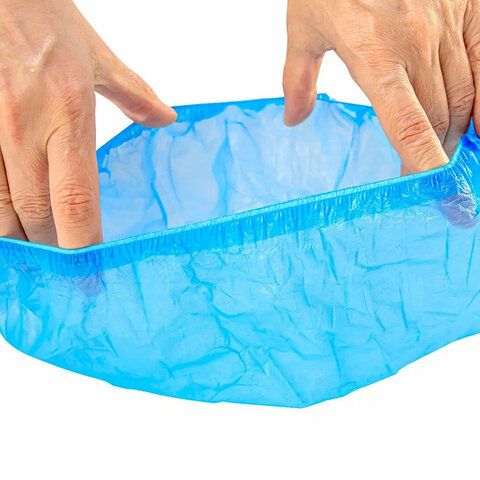 - Одноразовые бахилы — из плотного полиэтилена, подходят для кратковременного использования в медицинских и образовательных учреждениях, офисах, приёмных.
