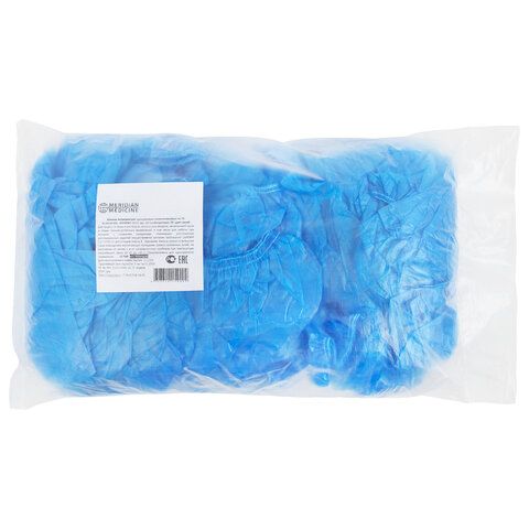 Бахилы MERIDIAN ОСОБО ПРОЧНЫЕ, 6 грамм, синие, КОМПЛЕКТ 100 штук (50 пар), 40х15 см, 55 мкм