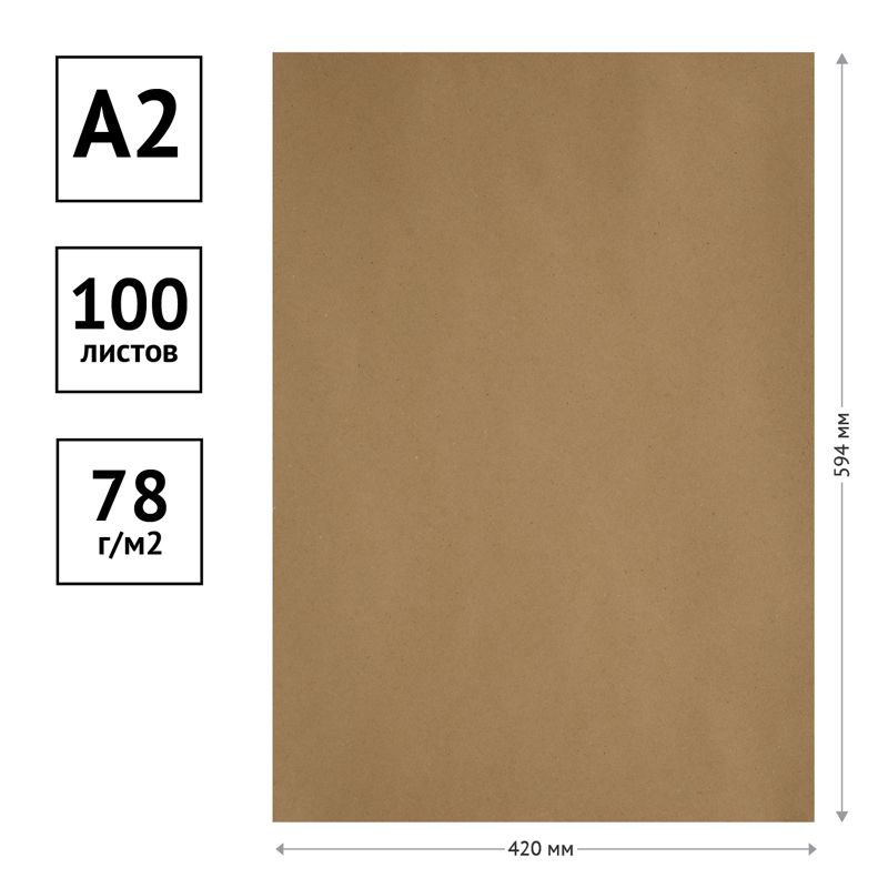 Крафт-бумага для упаковки А2 OfficeSpace, 100л., 78г/м2