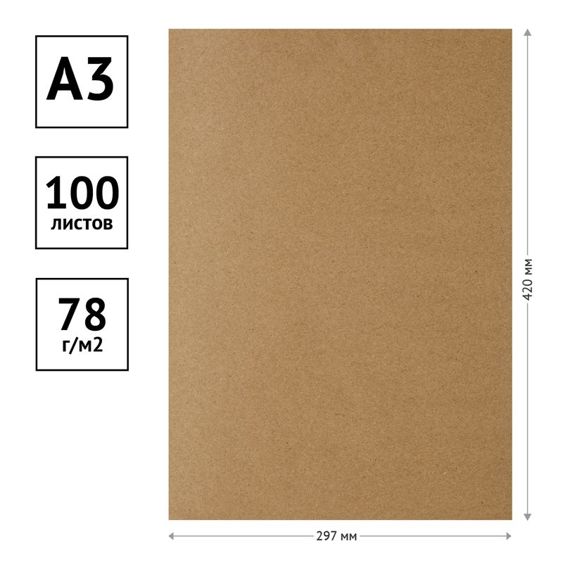 Крафт-бумага для упаковки А3 OfficeSpace, 100л., 78г/м2