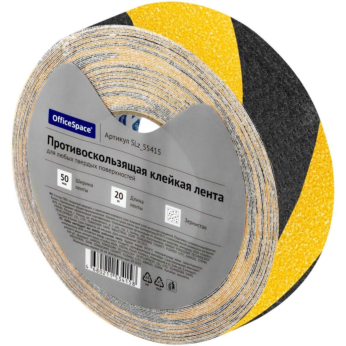 Клейкая лента зернистая OfficeSpace, 50мм*20м, противоскользящая, черно-желтая