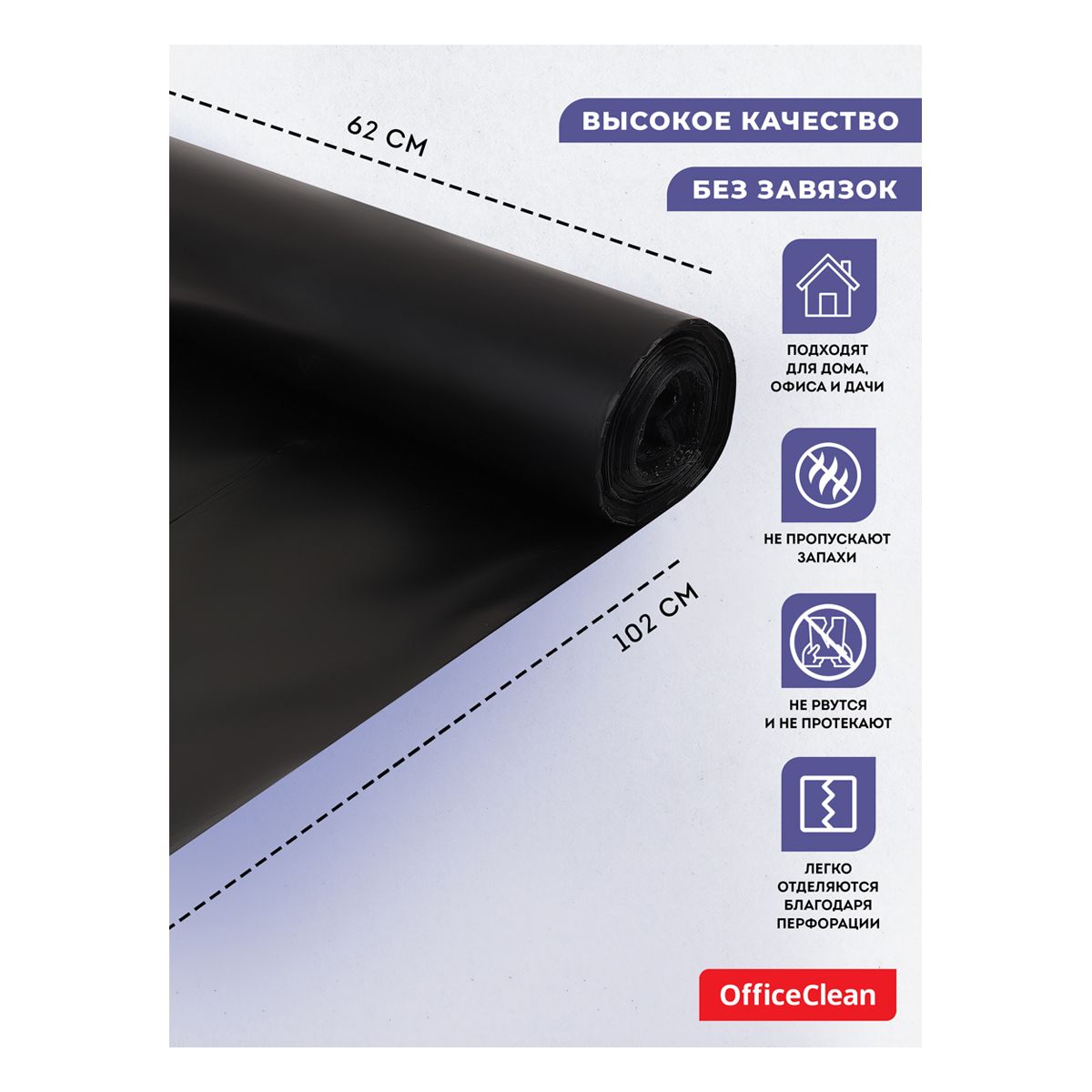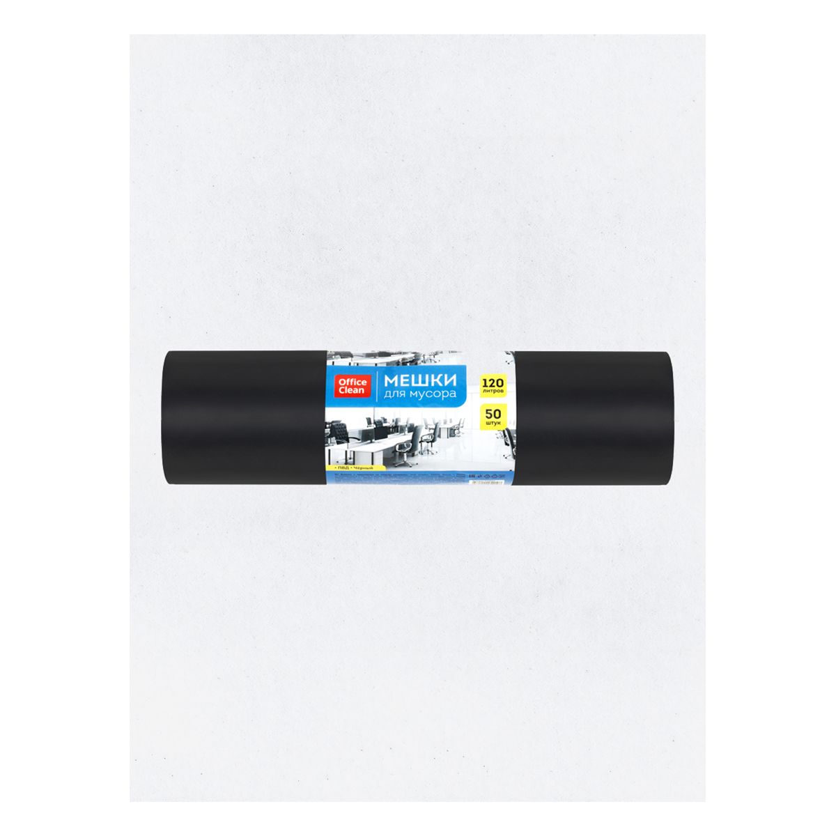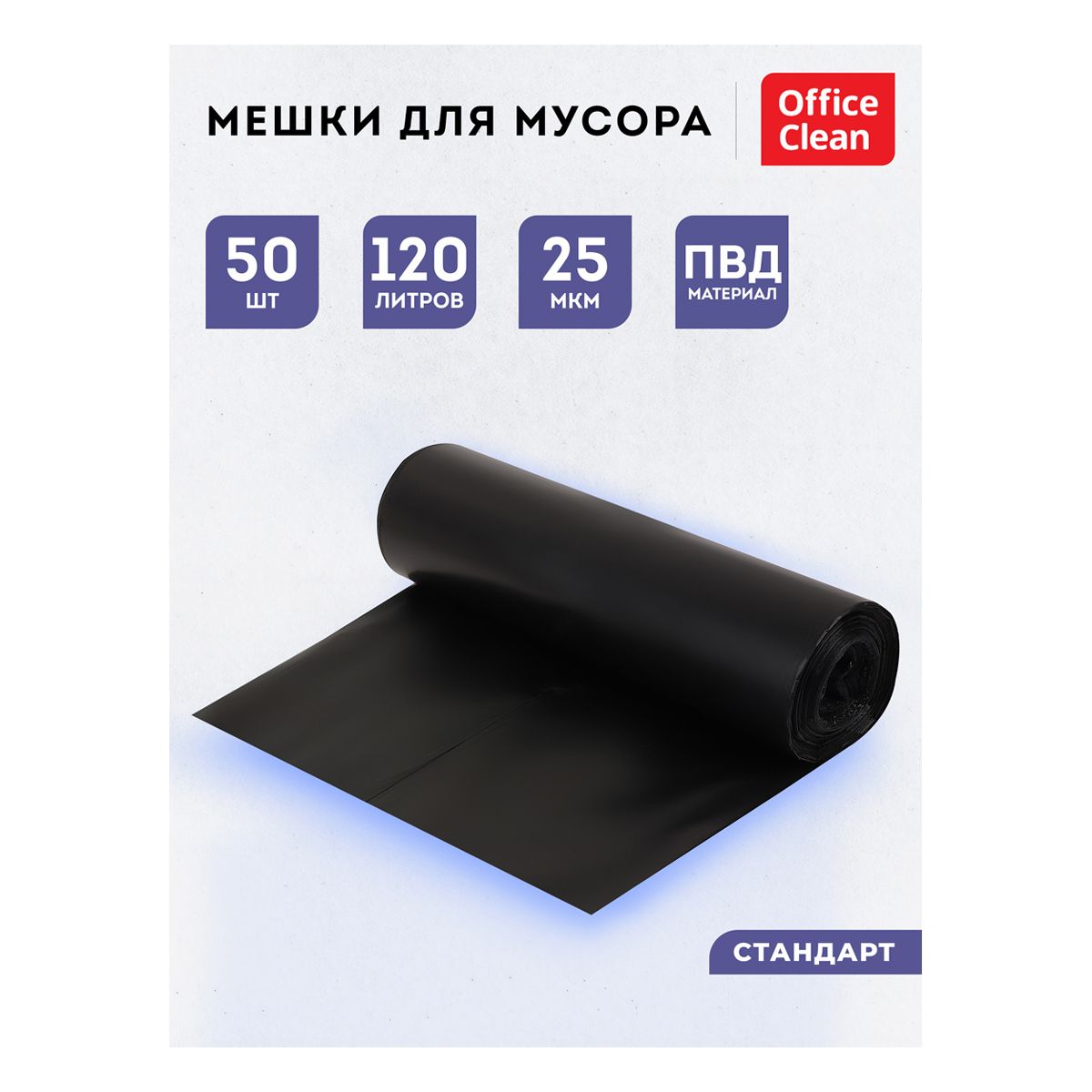 Мешки для мусора 120л OfficeClean ПВД, 62*102см, 25мкм, 50шт., черные, в рулоне