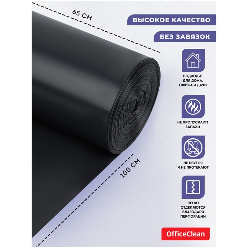 Мешки для мусора 120л OfficeClean ПВД, 65*100см, 30мкм, 25шт., прочные, черные, в рулоне