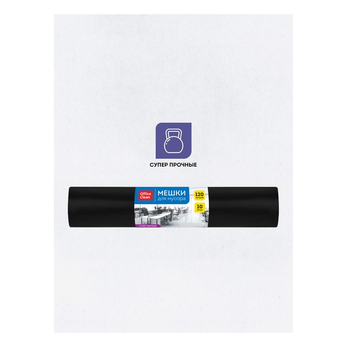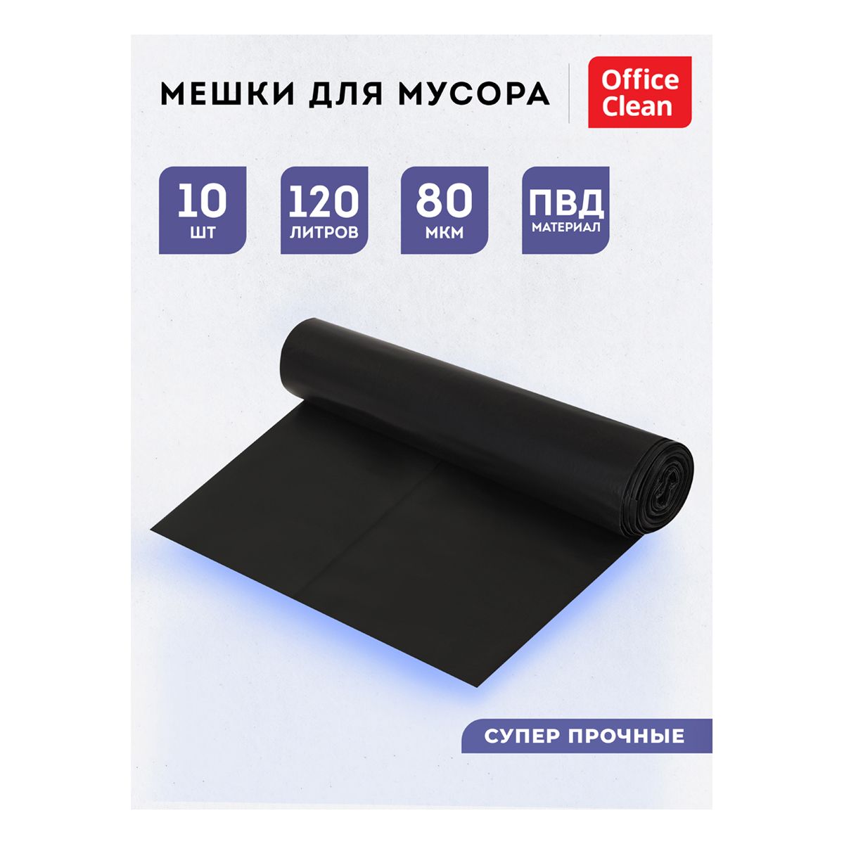 Мешки для мусора 120л OfficeClean ПВД, 70*108см, 80мкм, 10шт., суперпрочные, черные, в рулоне