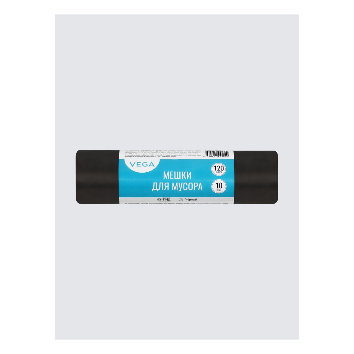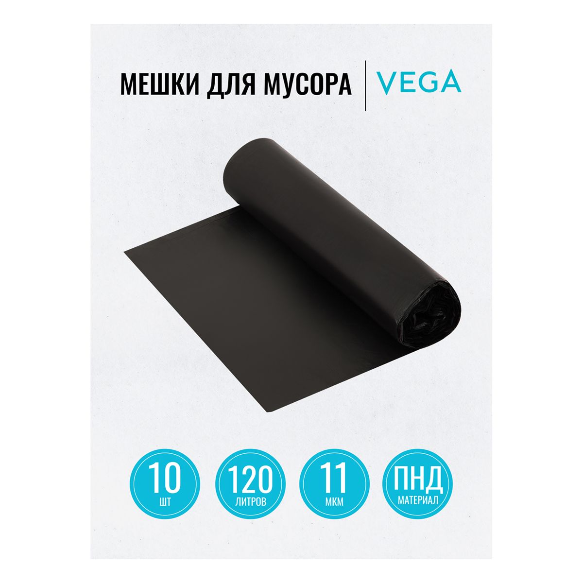 Мешки для мусора 120л Vega ПНД, 67*102см, 11мкм, 10шт., черные, в рулоне